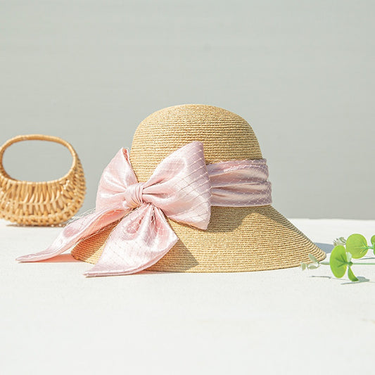 Sun Hat Straw Hat with Mesh Yarn Bow Webbing