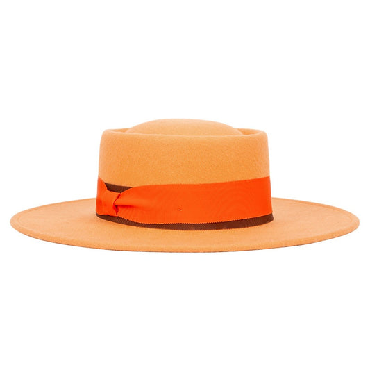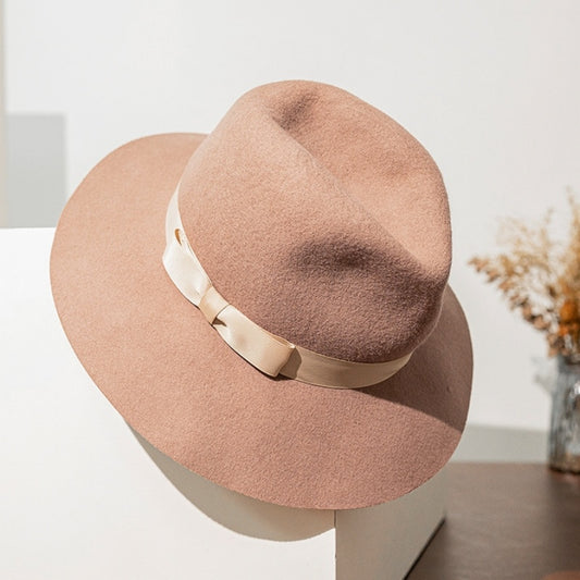Felt Top Hat Rolled Edge with Flax Ribbon Decoration