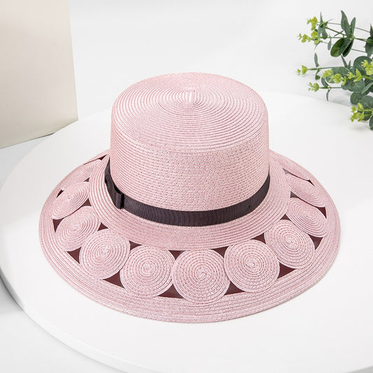 Hollow-carved Flat-topped Hat with Bow Webbing