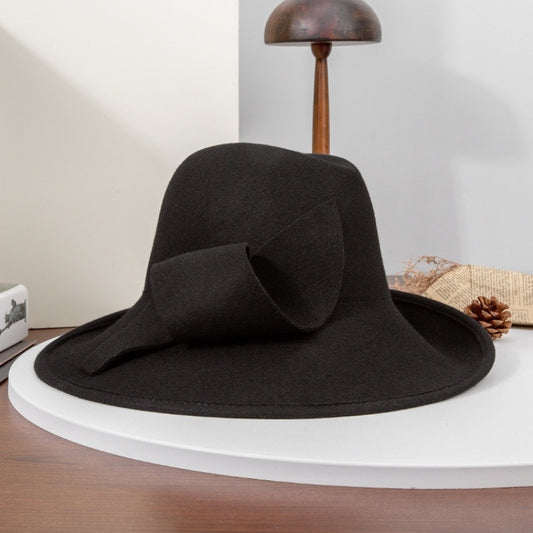 Felt Wide Brim Top Hat with Bow Webbing Decoration