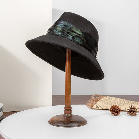 Felt Wide Brim Cowboy Hat with Bow Webbing and Feather