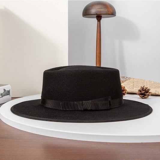 Felt Flat Roof Top Hat with Woven Webbing Decoration
