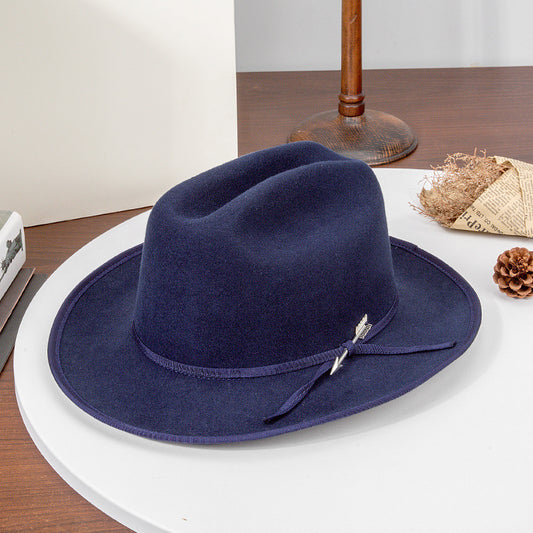 Felt Cowboy Hat with Interwoven Thread Spliced Copper Buckle Leather Strap