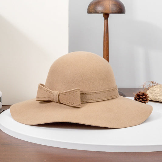 French Style Felt Wide Brim Top Hat With Bow Webbing