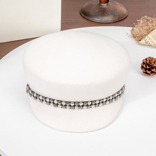 Felt Equestrian Newsboy Hat With Double-Row Copper Sheet Decoration