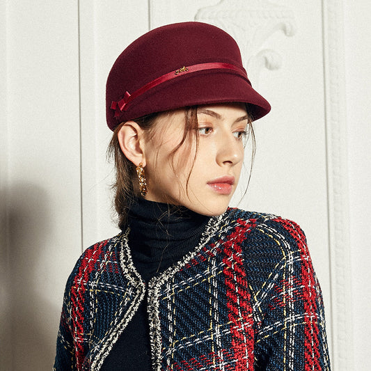 Felt Equestrian Newsboy Hat with Velvet Bow Decoration