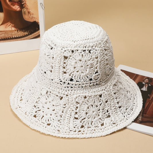 Handmade woven straw hat for women, new summer style, beach vacation theme, openwork large brim, beach sun protection and shade fishing hat