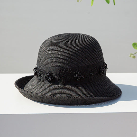 Felt Flat Top Hat with Bow Webbing and Crystal