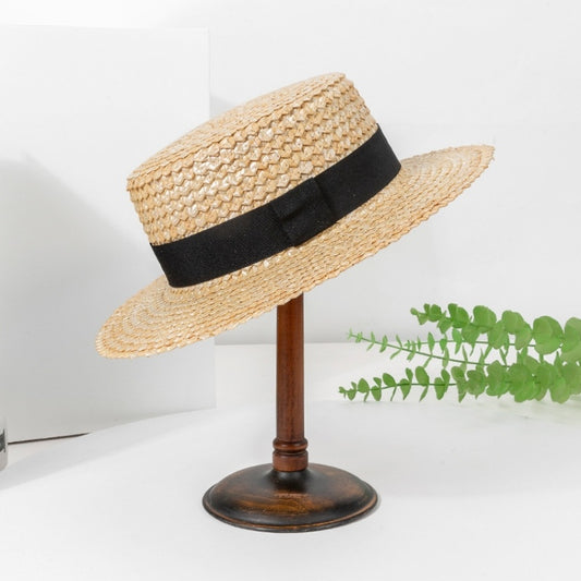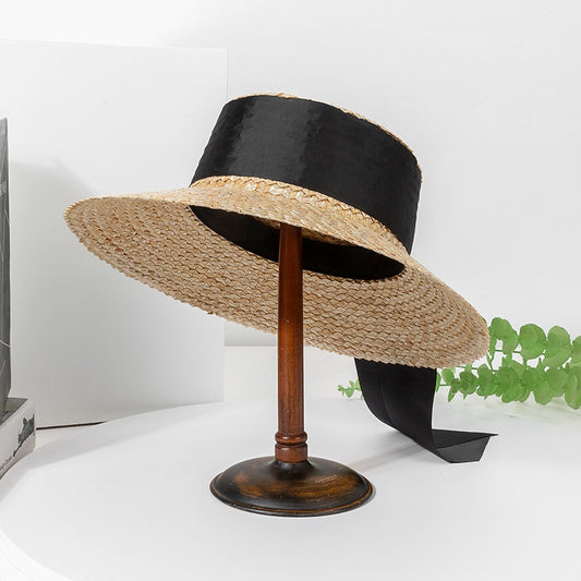 Felt Flat Roof Wide Brim Top Hat with Bow Webbing and Feather
