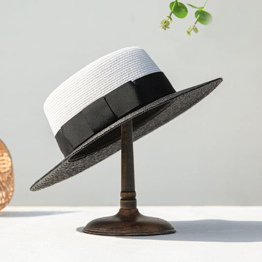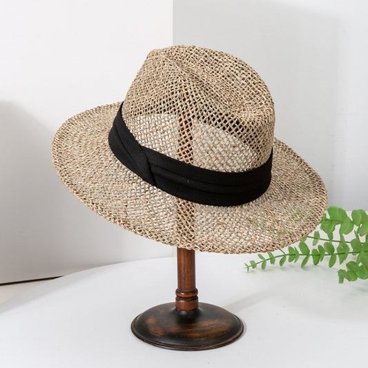 Straw Hollowed-out Hat Sun Hat with Black Decorative Band