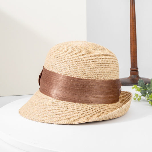 Sun Hat Bowler Hat with Black Linen Yarn Webbing