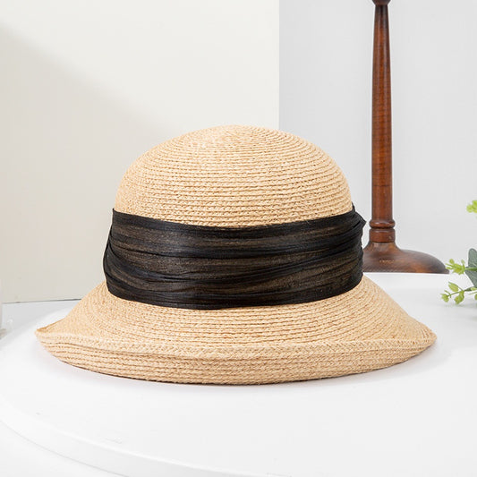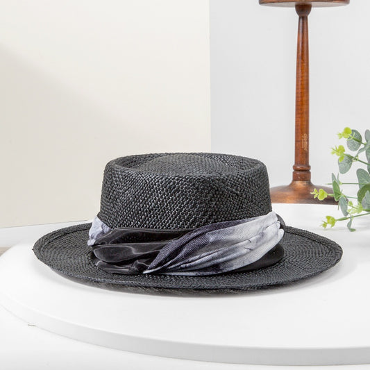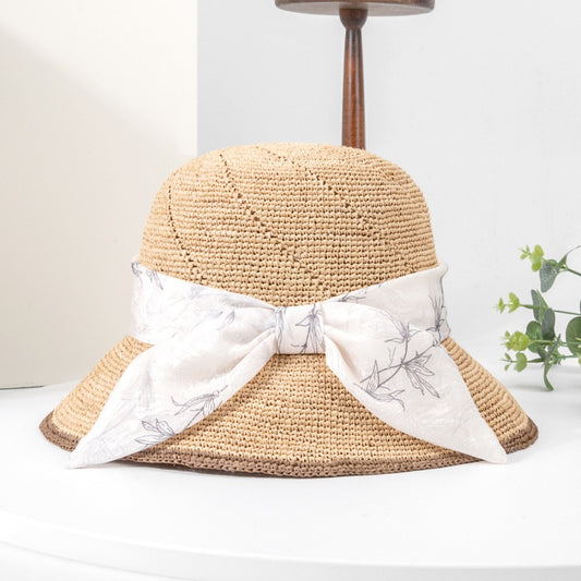 Straw Hat Sun Hat with Bow Cloth Webbing