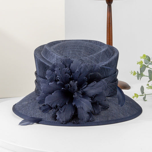 Water Blue Linen Yarn Top Hat with Floral Decoration